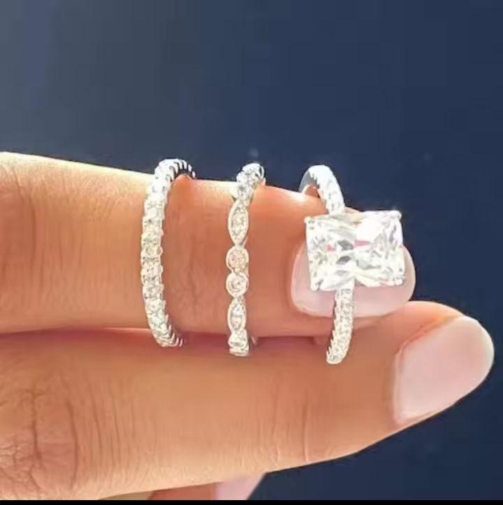delicate silver color metal square stone ring elegant fashion party engagement ring for women